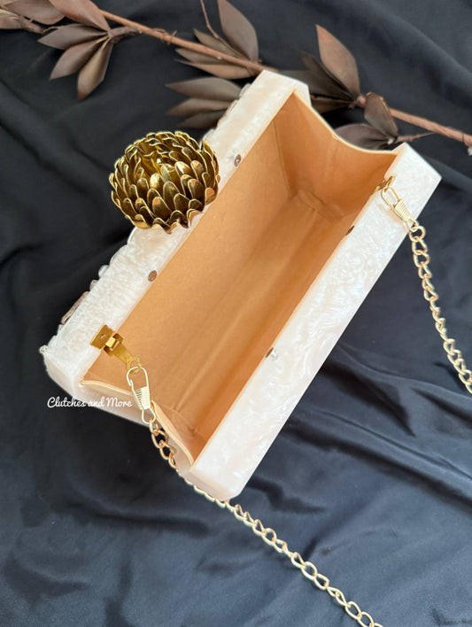 Premium Embellished Resin Clutch Off White