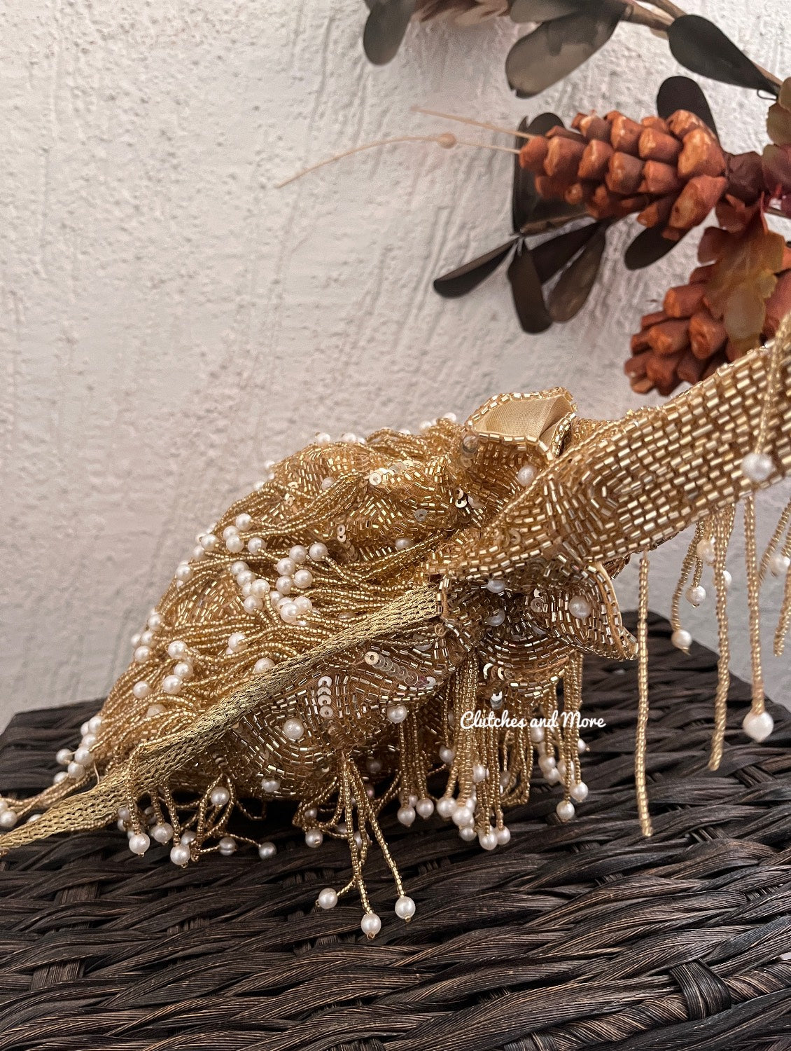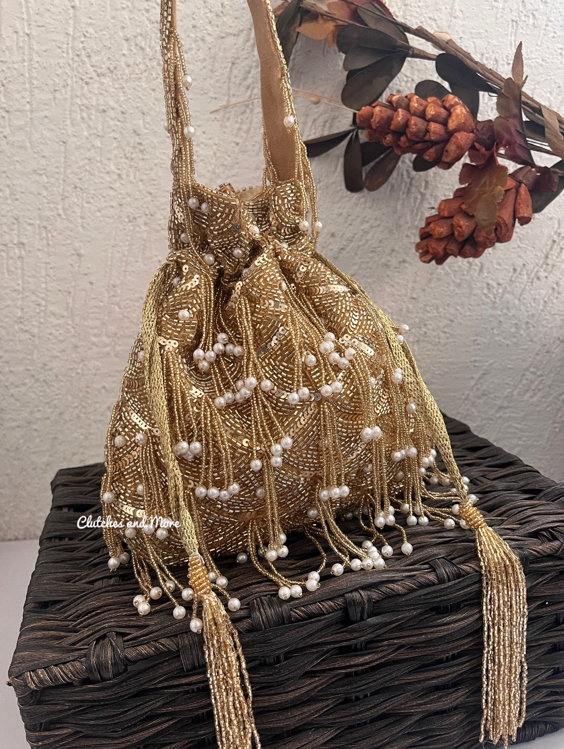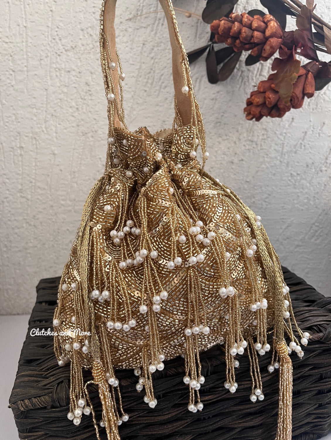 All new Gold potli with pearl latkans