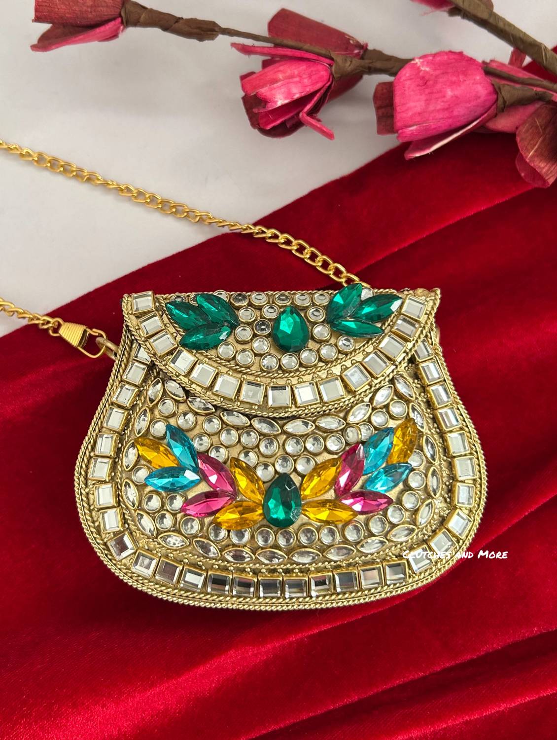 Kasika Kundan Brass Mini Clutch Multicolored