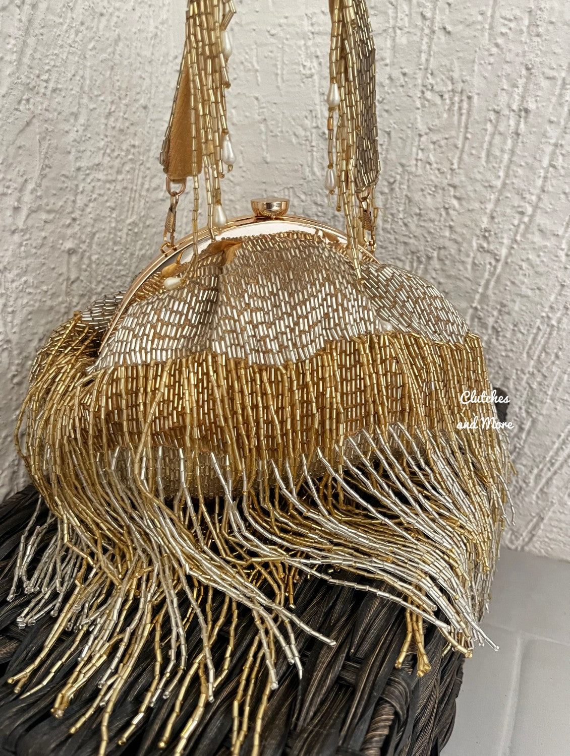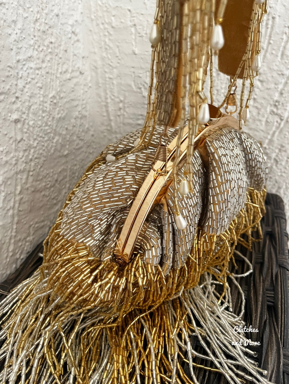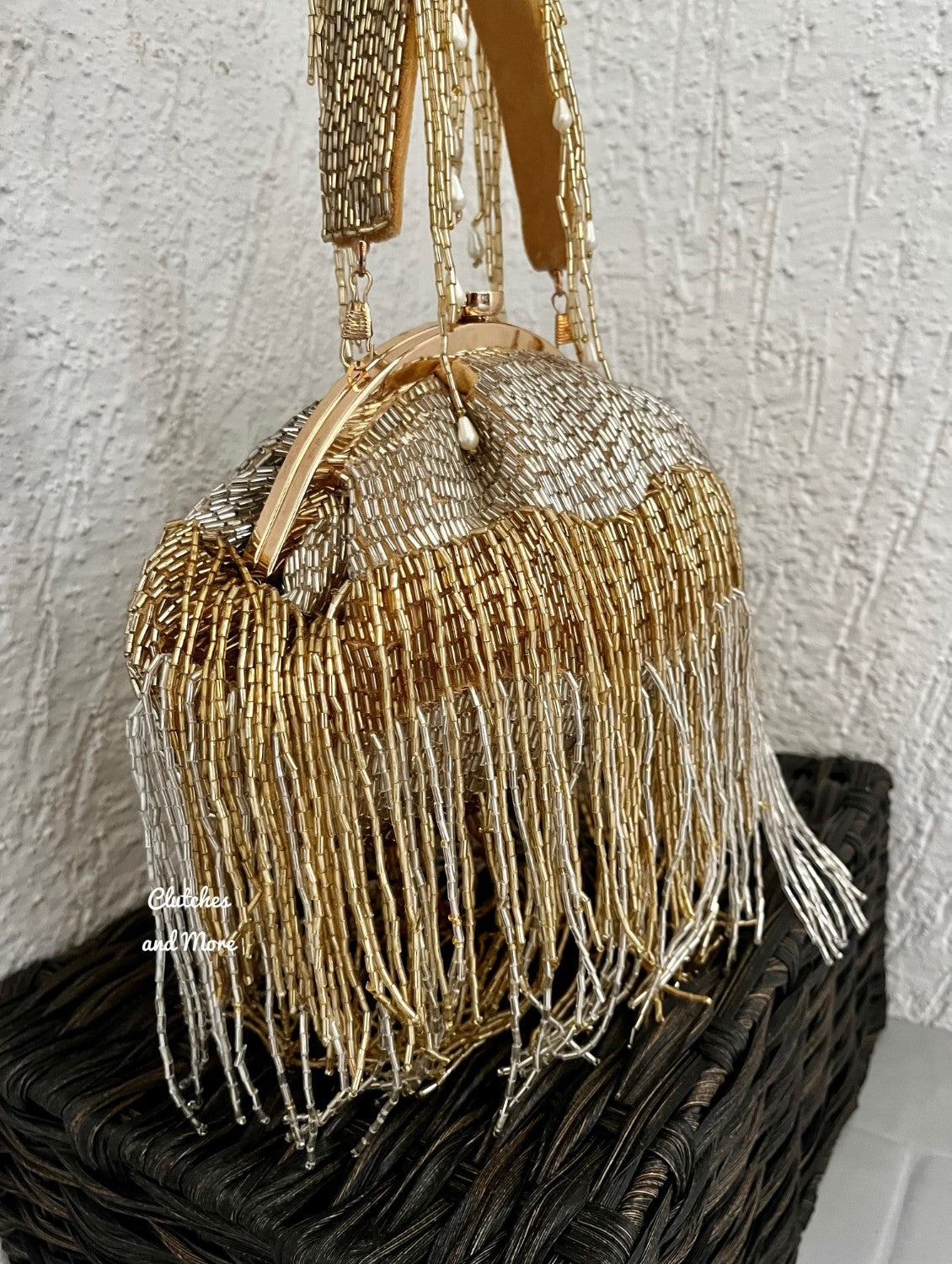 Silver Gold Batua Bag with long Tassles
