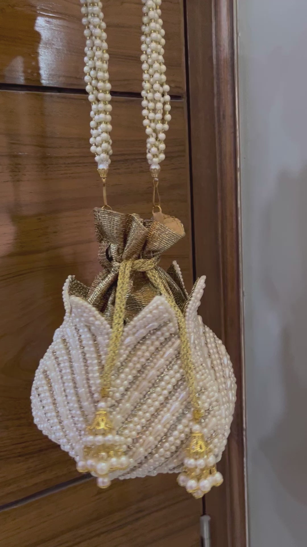 White Lotus Pearl Potli