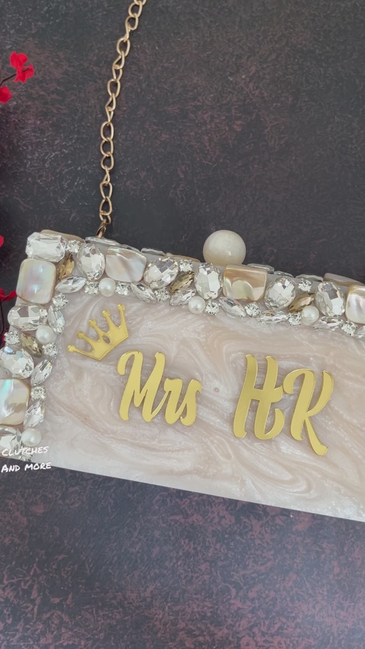 note: please mail/ whatsapp us with name required on the clutch before placing an order